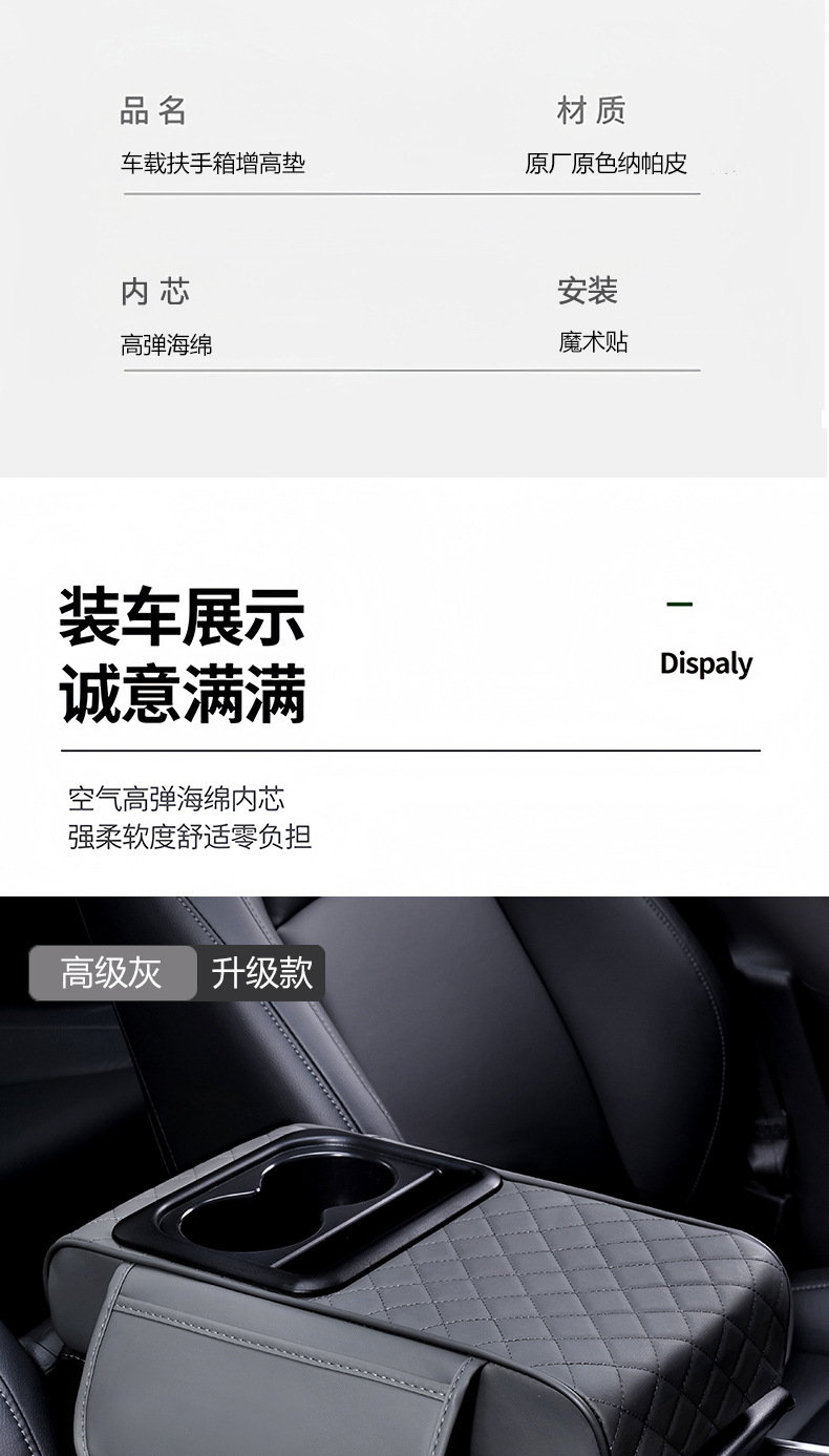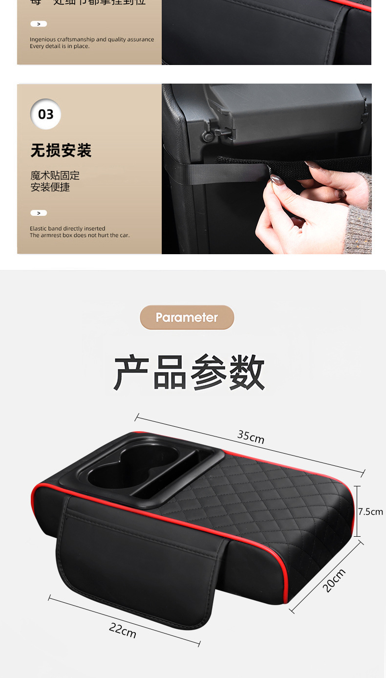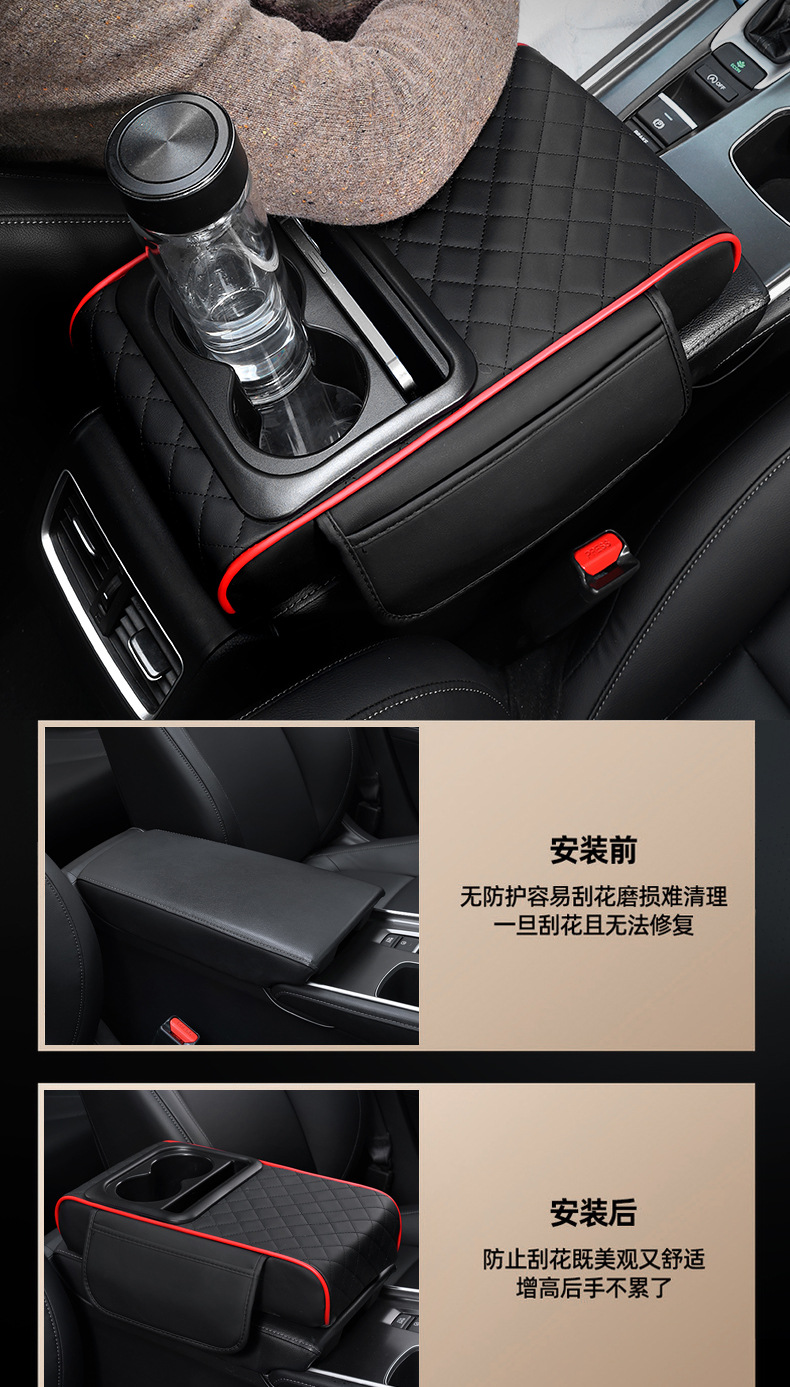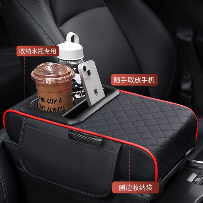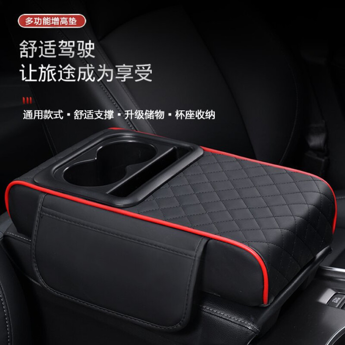 汽車扶手箱墊儲物盒側邊收納水杯架三合一車用汽車扶手箱增高墊