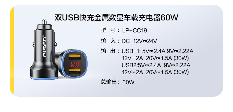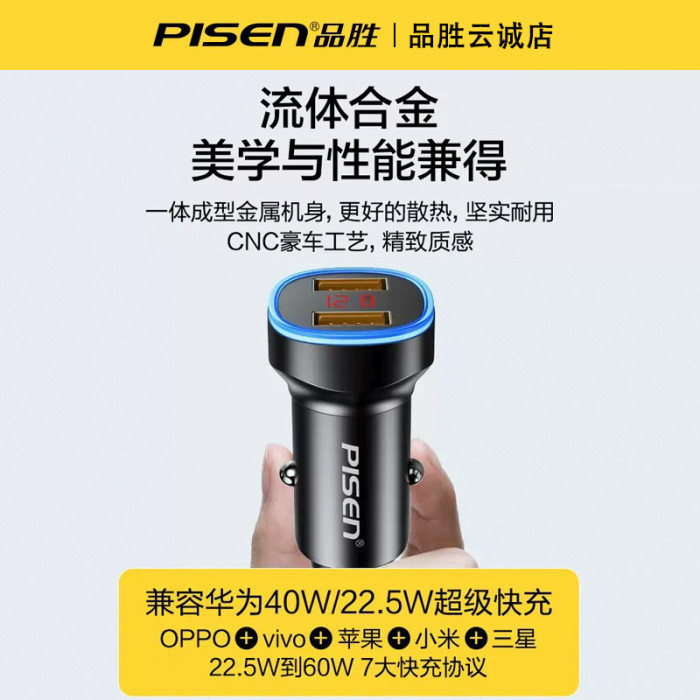 品勝車用充電器60W雙口超級快充usb一拖二汽車點菸器轉換插頭車充