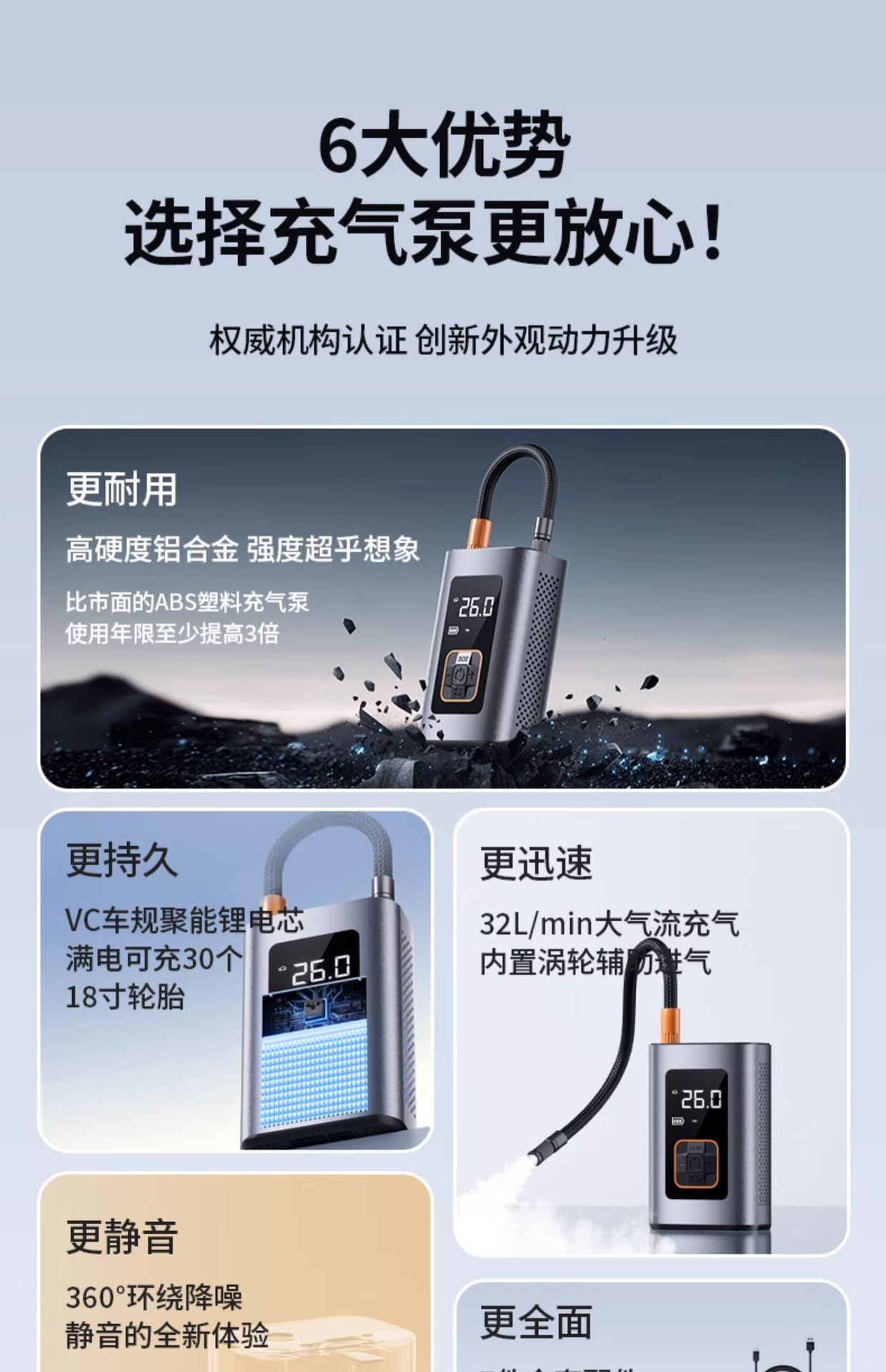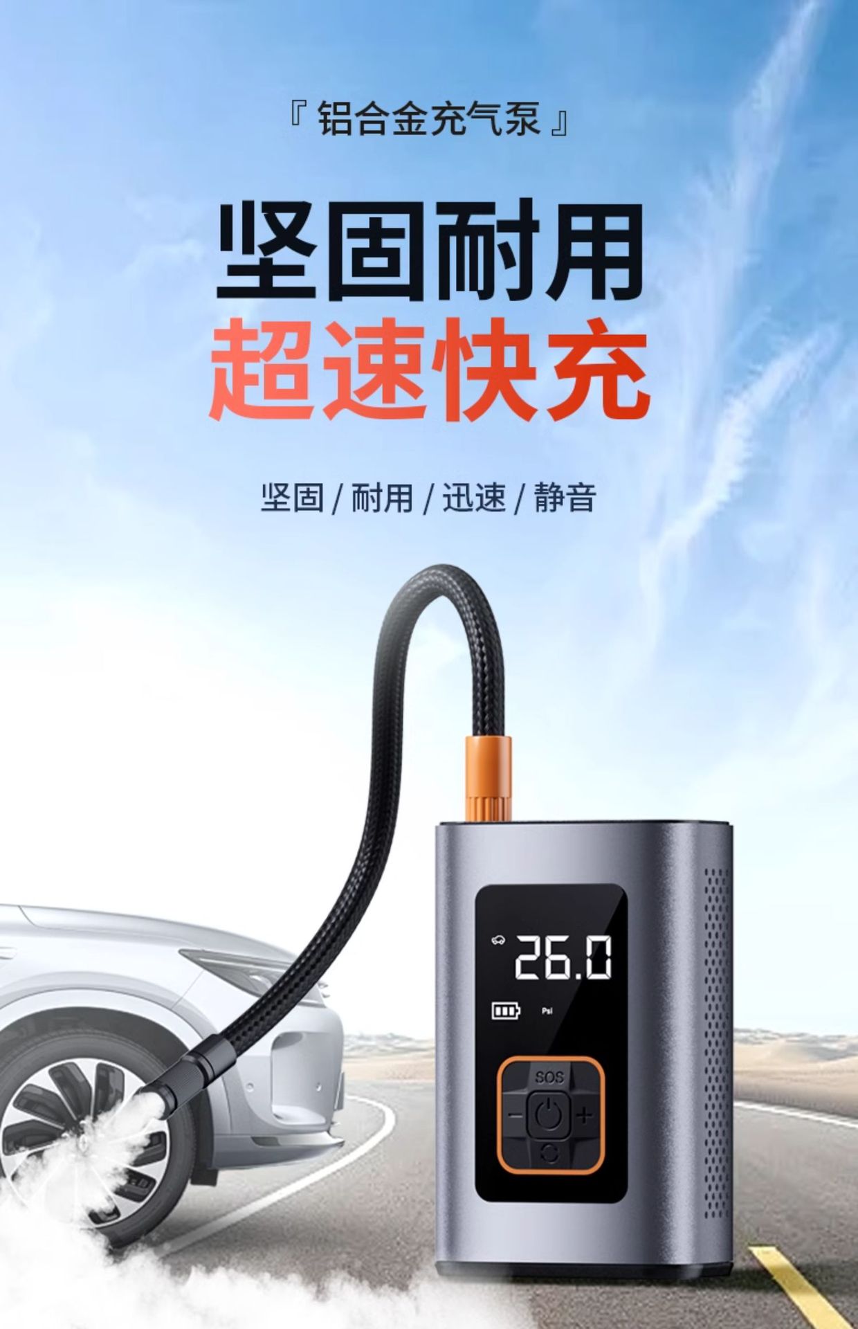 DF-8006-01【多用款】【合金灰】鋁合金機身+預設胎壓+充滿自停+雙屏測壓+充電寶+收納袋