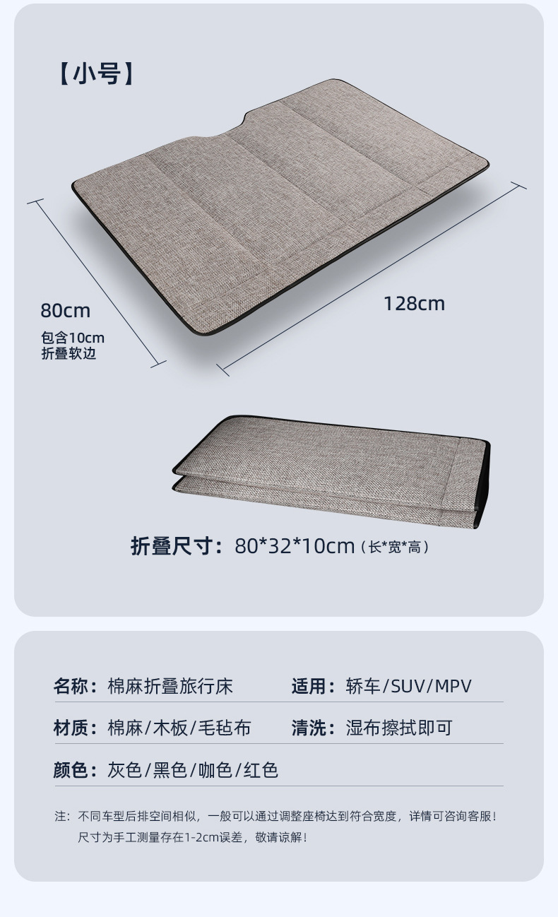 車用折曡床可攜式後排睡墊棉麻亞麻轎車SUV旅行床免充氣式折曡床