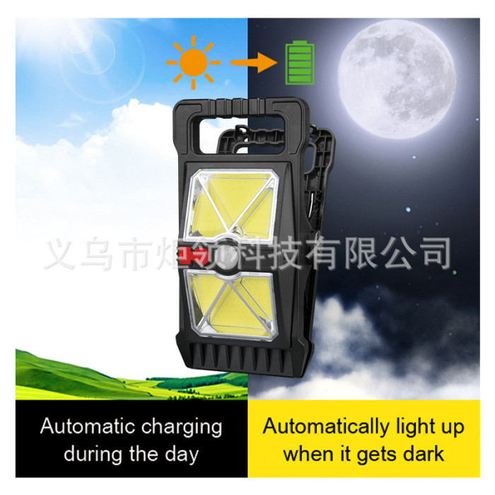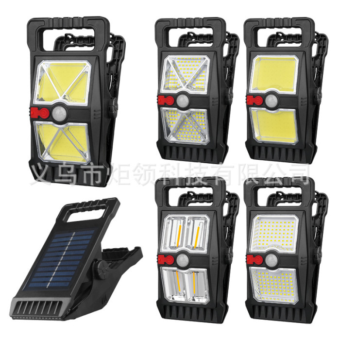 新款太陽能夾子燈人體感應壁燈家用庭院燈多功能可攜式露營燈
