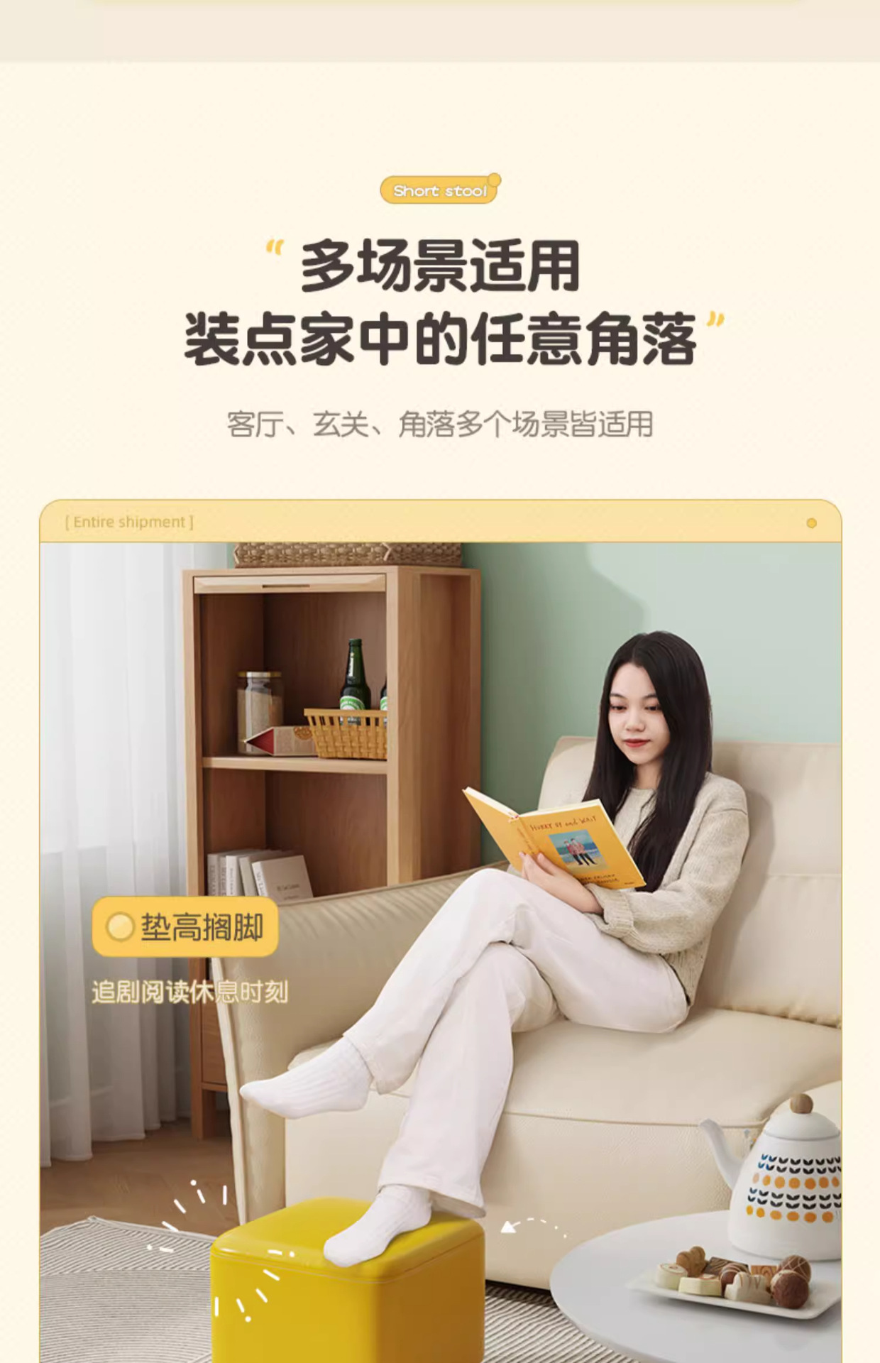 方糖矮凳【小號-黃色】手提設計+防水皮料