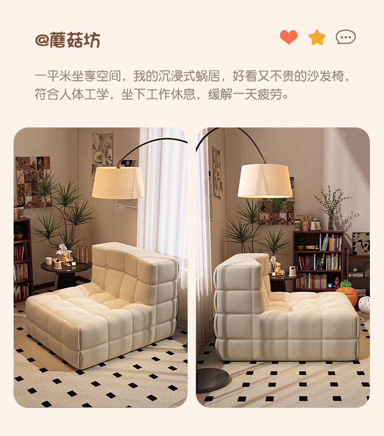華夫格懶人沙發單人椅可躺可睡窩窩椅子網紅毛毛蟲沙發榻榻米座椅