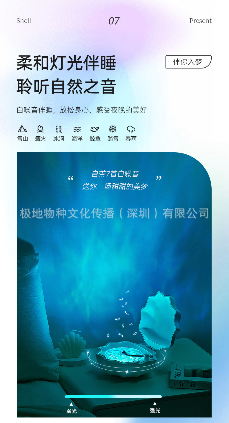 新品貝殼燈音響低音藍牙高音質音響炫彩燈光投影白噪音三合一