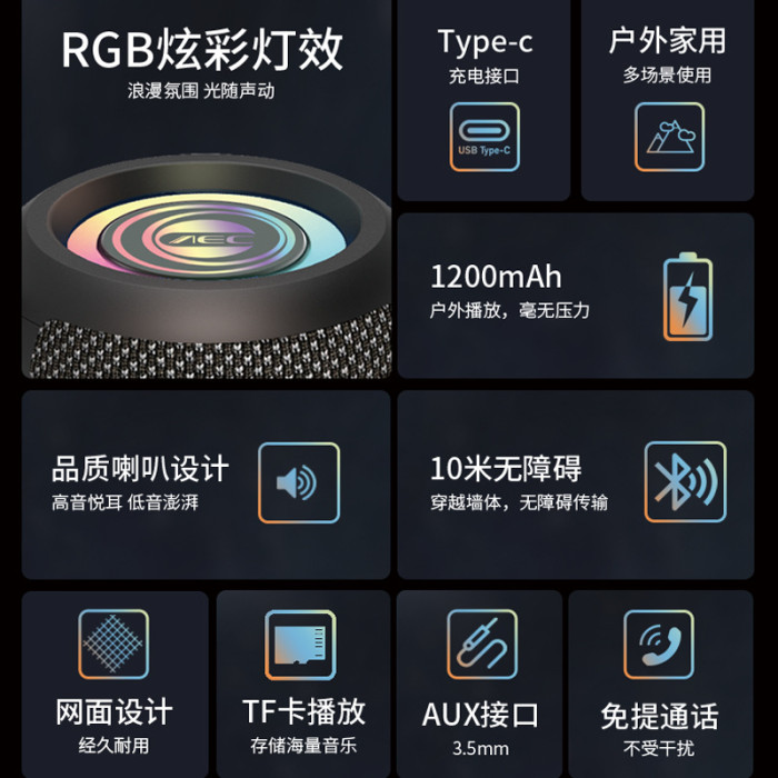 連接方式 | 3.5MM音頻插口 AUX TF卡 USB 藍牙連接 |