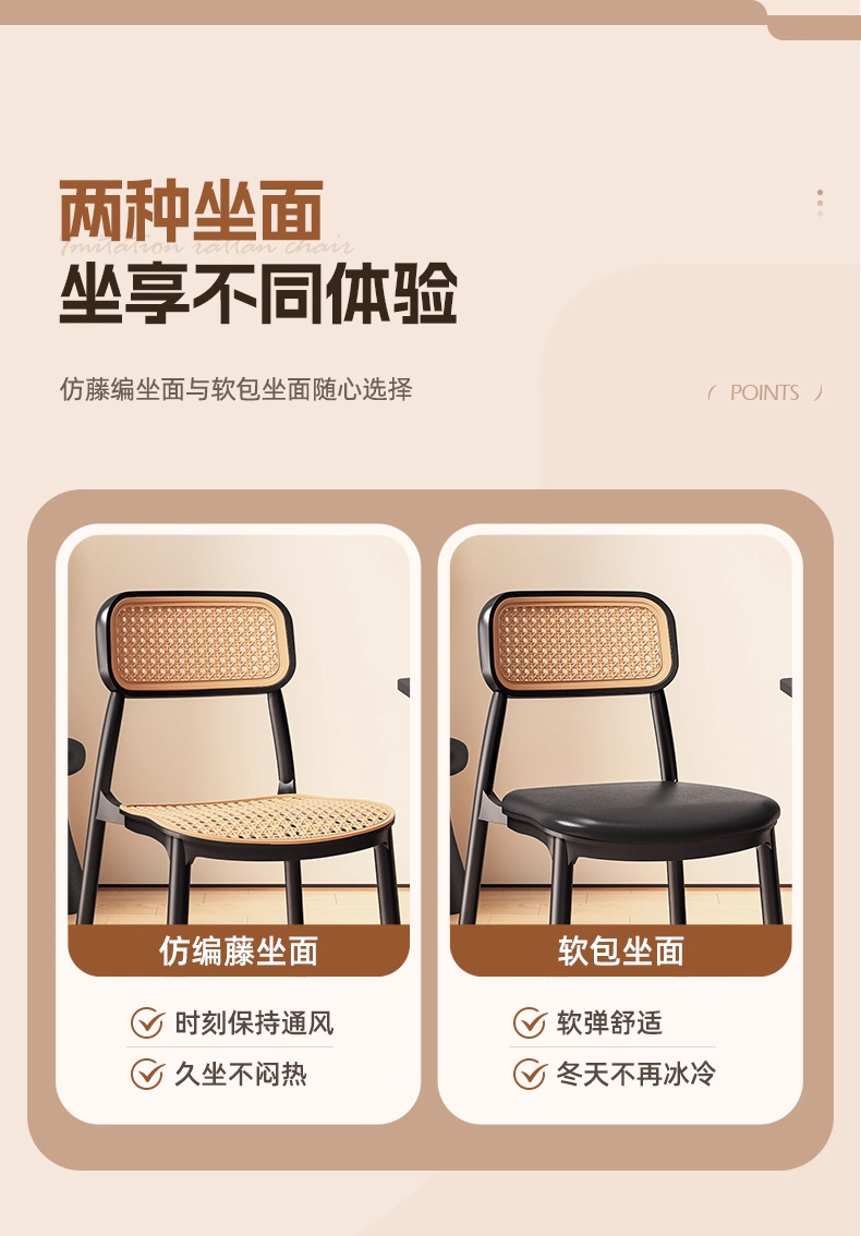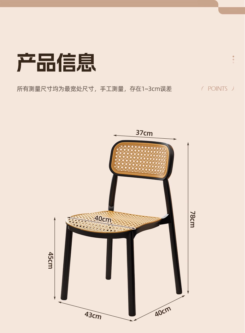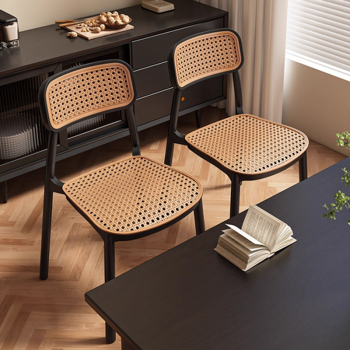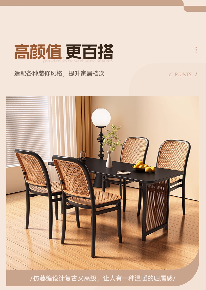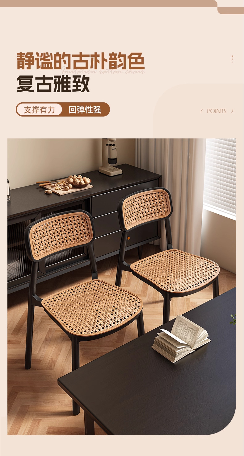 塑膠藤編椅子中古風餐椅靠背椅透氣藤椅家用小戶型餐桌椅民宿凳子