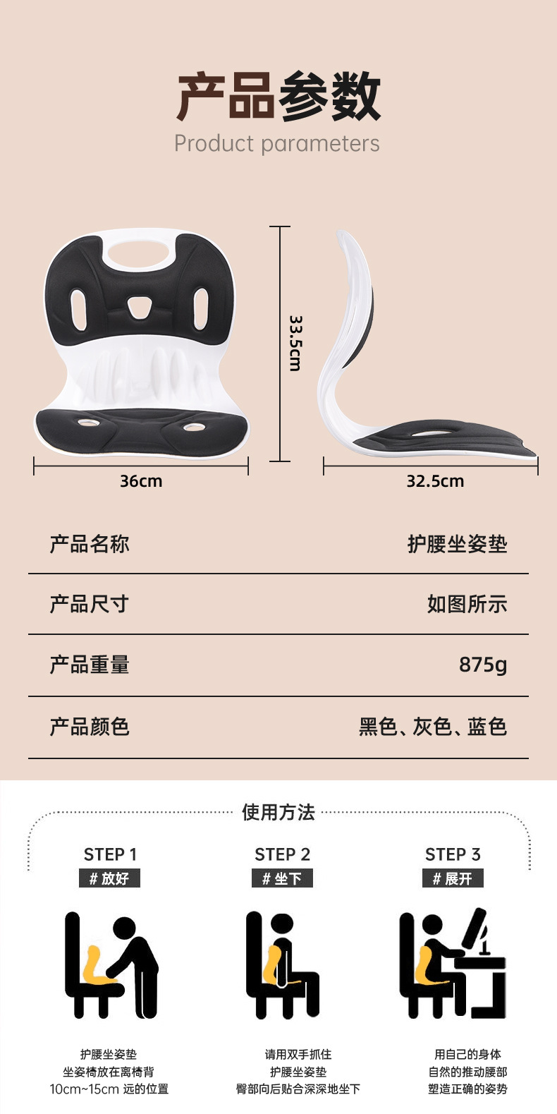 新款護腰坐姿椅學生兒童矯正坐墊辦公室座椅靠墊一體久坐神器