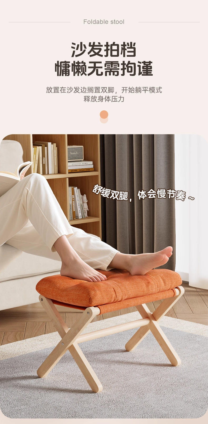 開箱即用【X型堅固腳托+柔軟親膚棉麻墊】香橙色