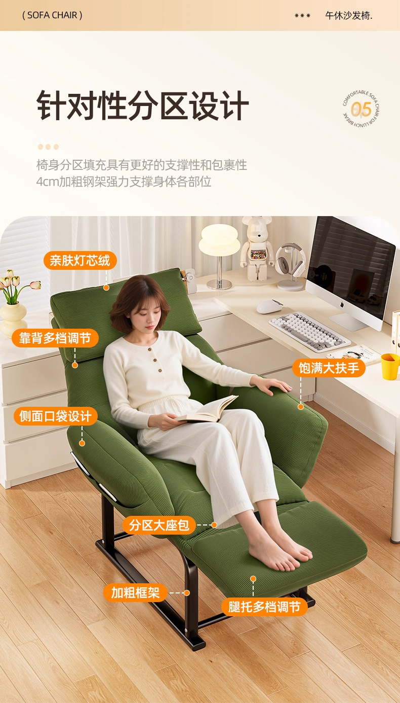 躺椅折曡午休坐躺睡三用靠背椅子單人宿舍學生舒服久坐懶人沙發椅
