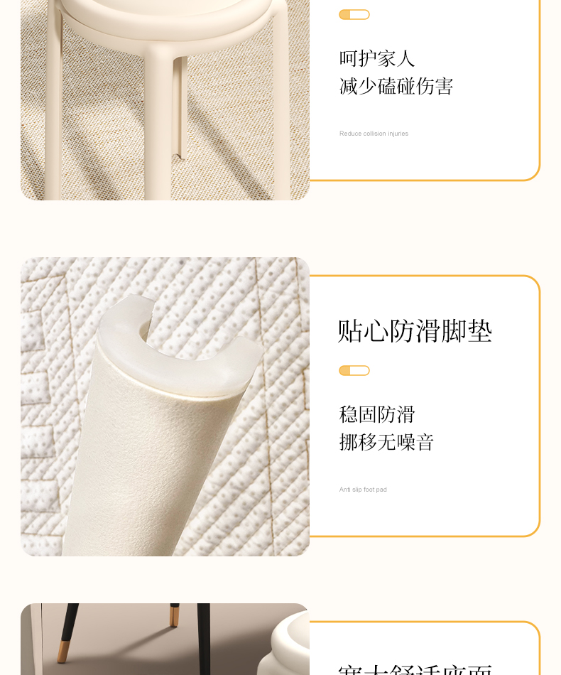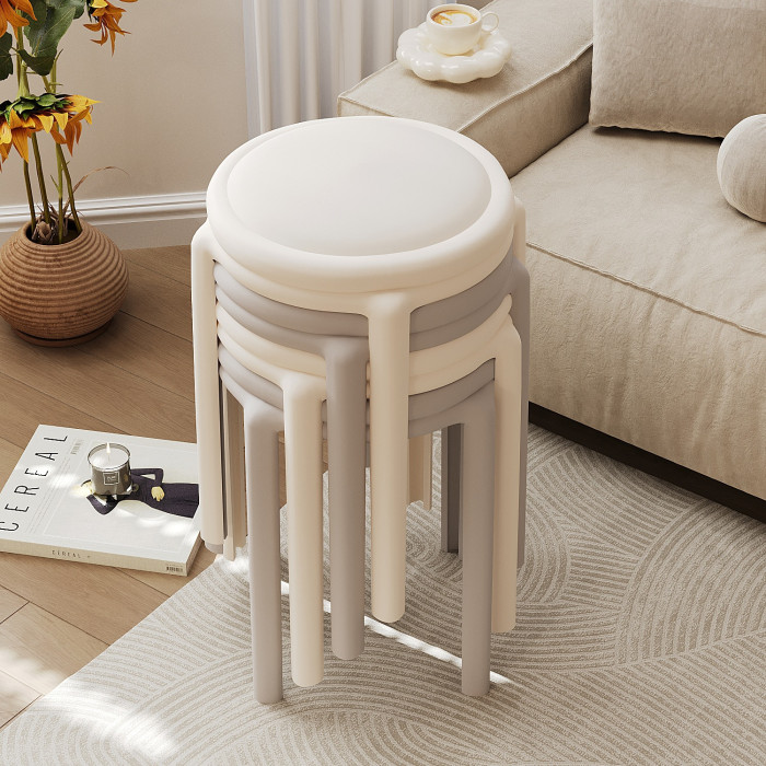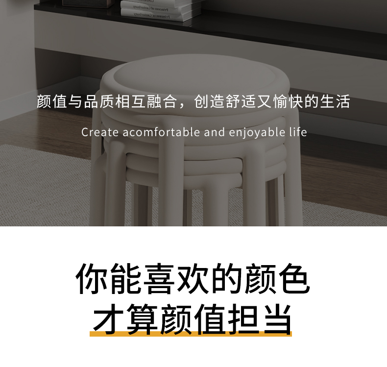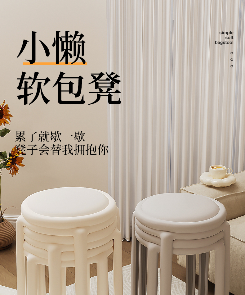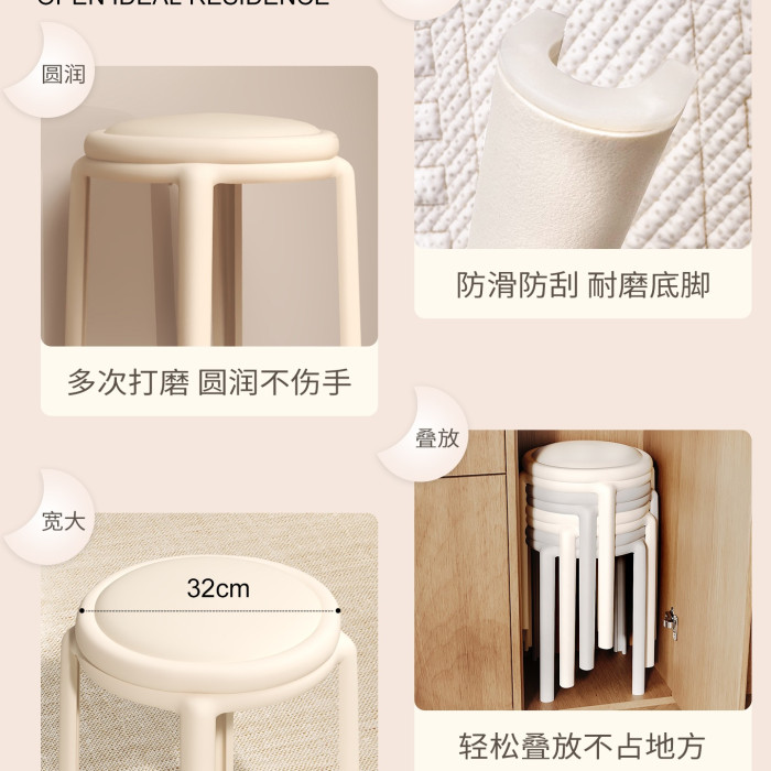 塑膠軟包凳子家用結實耐用可曡放加厚輕奢感圓凳餐桌客廳備用