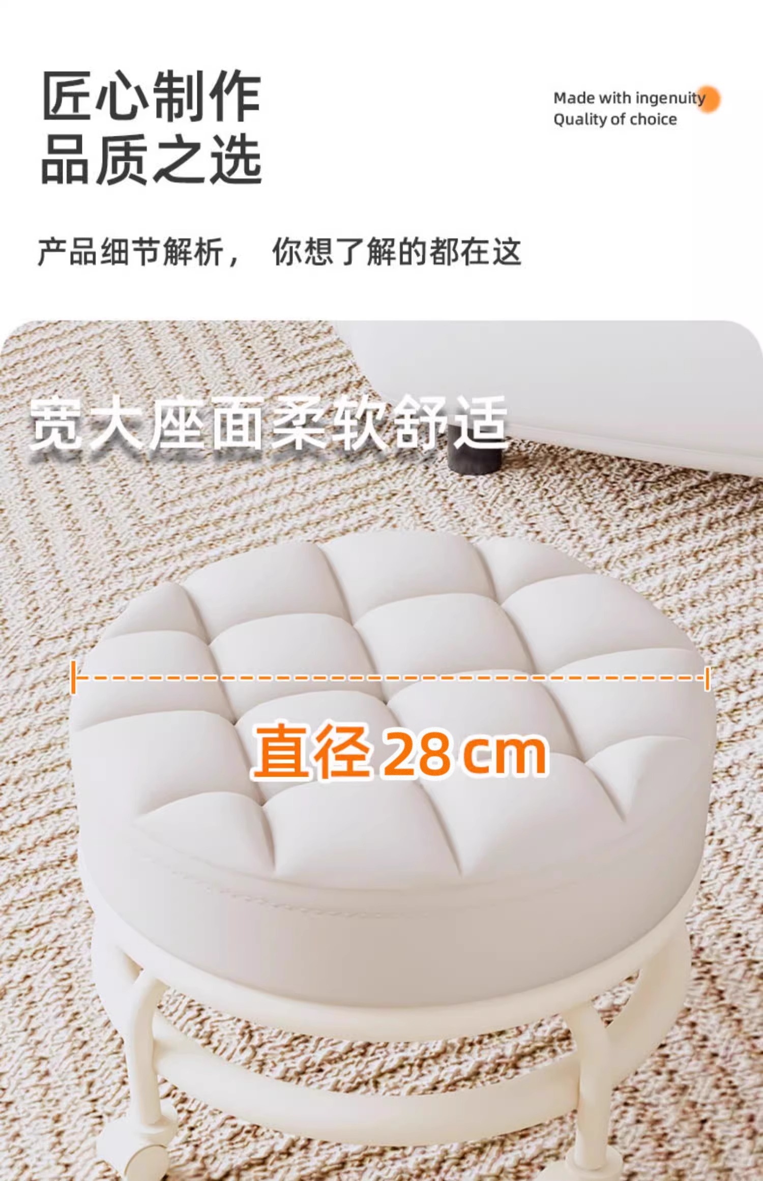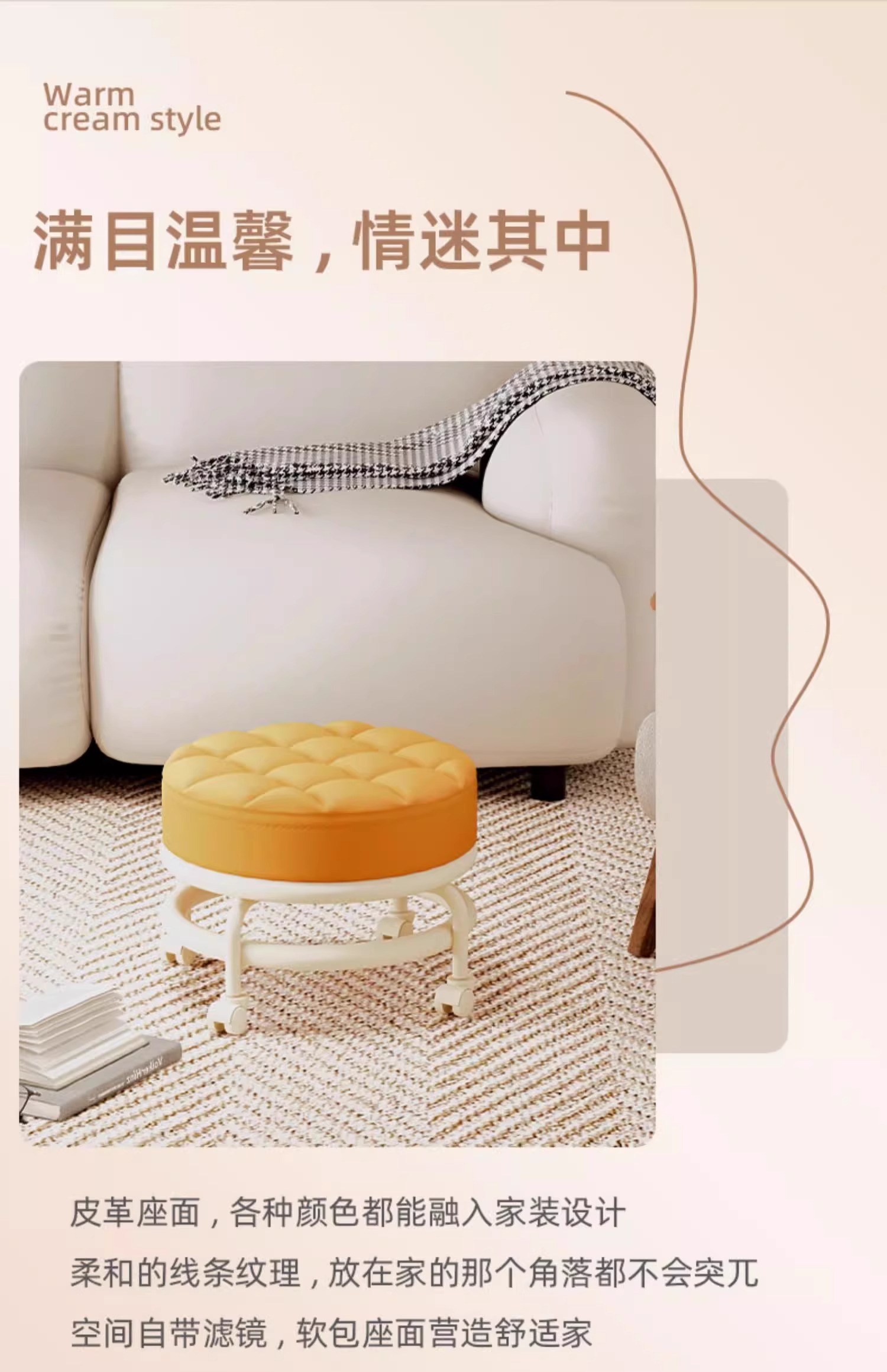 萬向輪小凳子護腰家用加厚靜音軟包靠背小椅子滑輪矮凳移動久坐