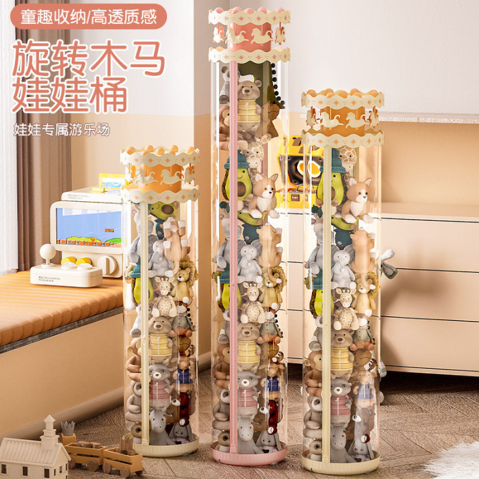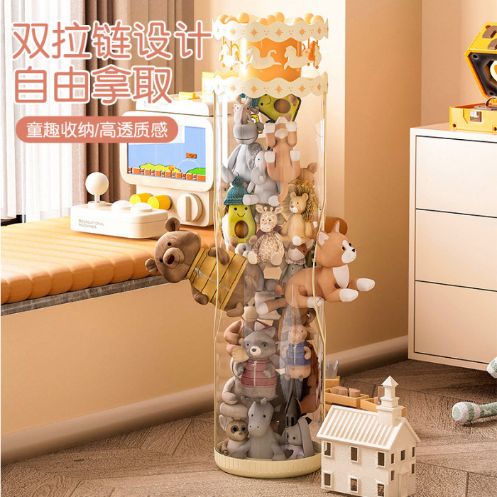 雙拉鍊大容量娃娃收納桶兒童毛絨玩具透明整理筐裝玩偶公仔收納桶
