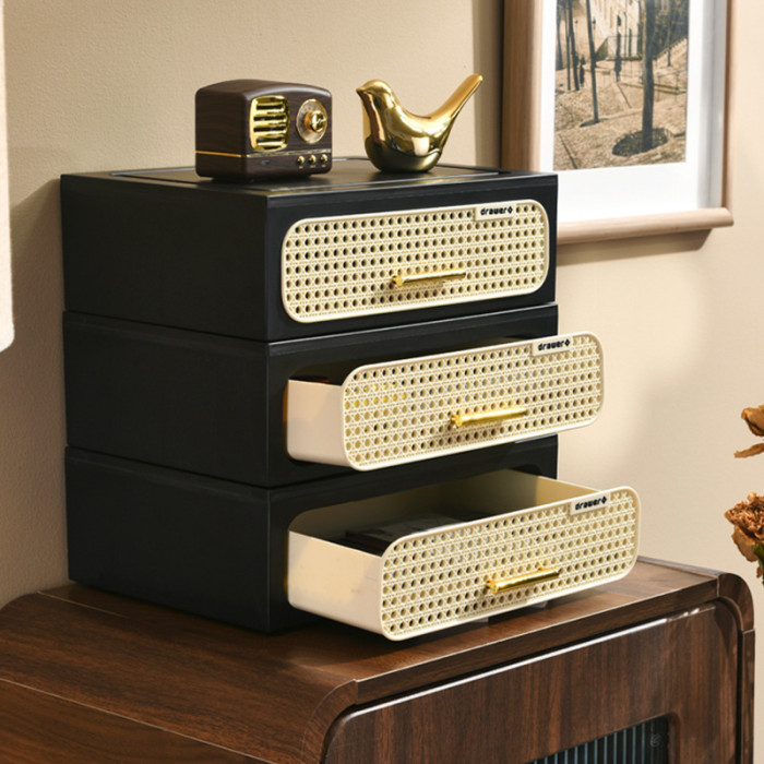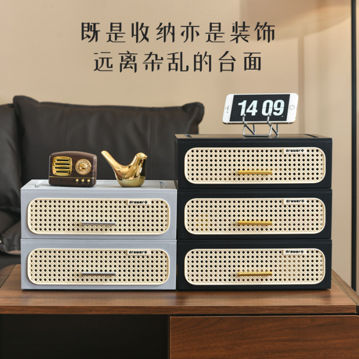 復古藤編床頭櫃抽屜收納桌面抽屜式多功能整理盒臥室抽屜式收納櫃