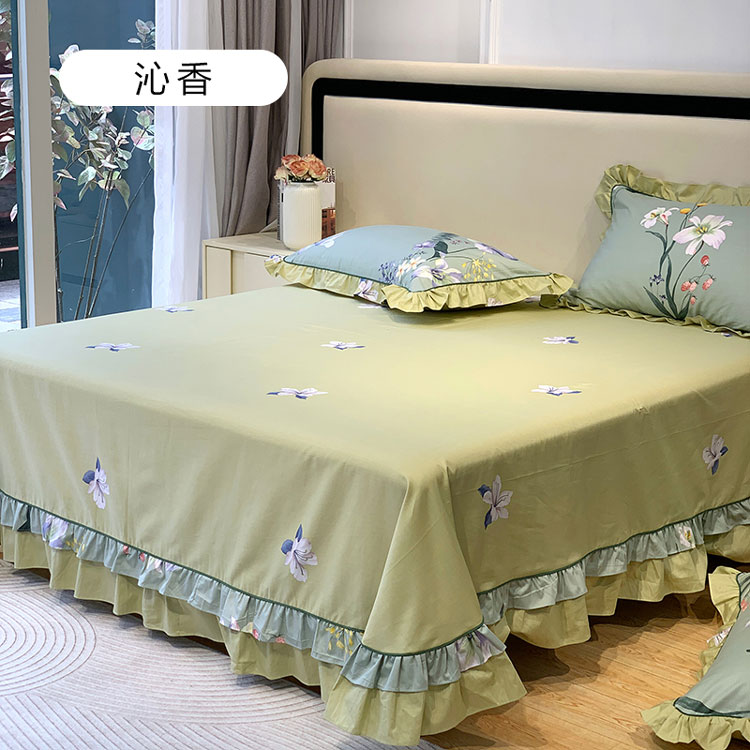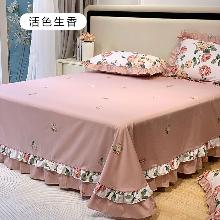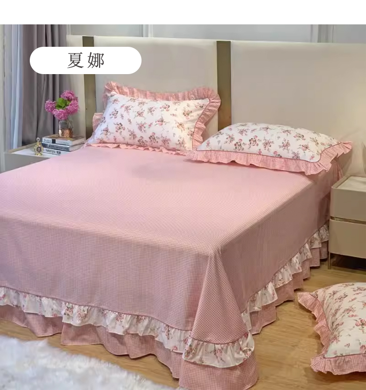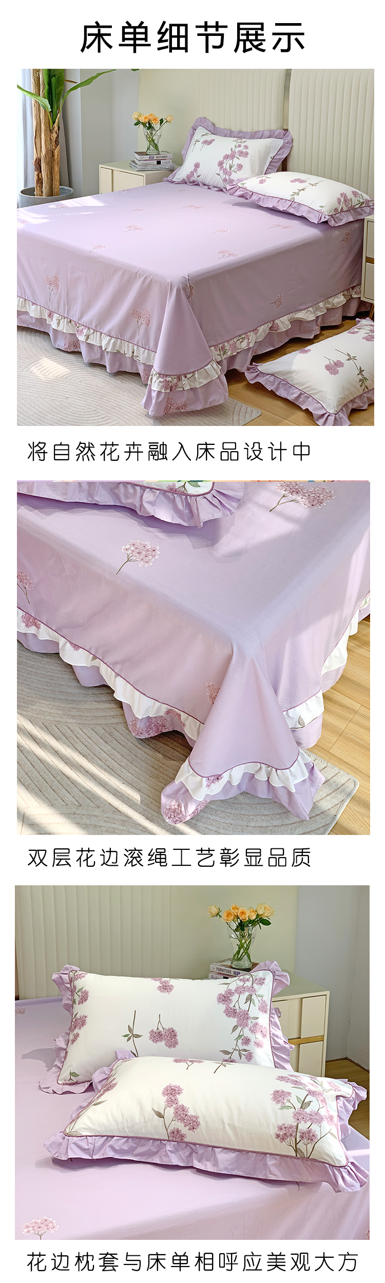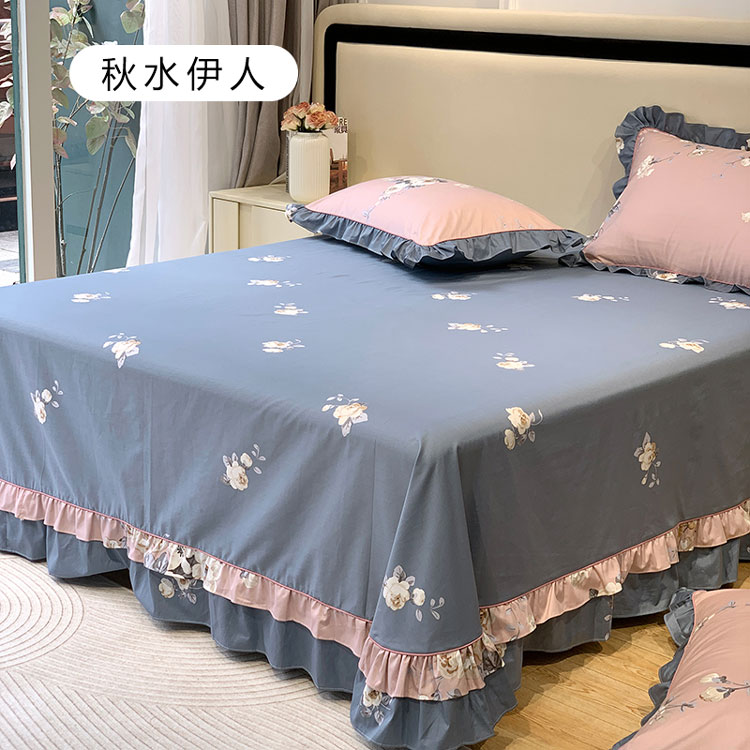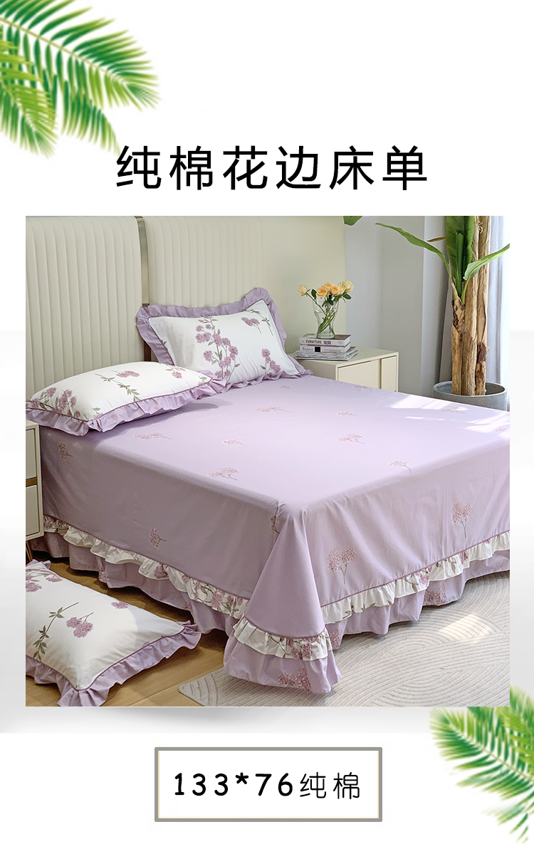 1米8x2米床雙人床單純棉單件100全棉紫色 四季通用被單三件套花邊