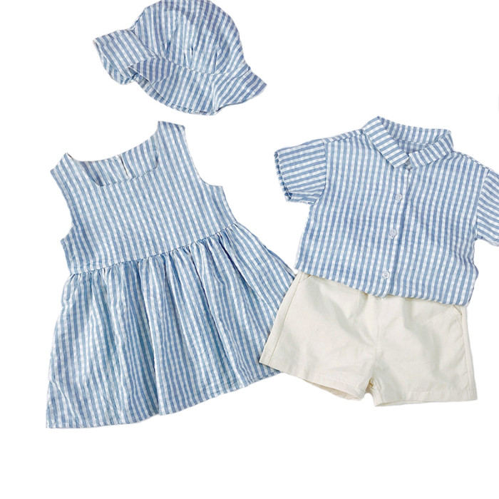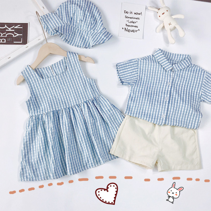 夏季新款兒童兄妹裝短袖夏裝洋氣寶寶姐弟親子裝連衣裙龍鳳胎套裝