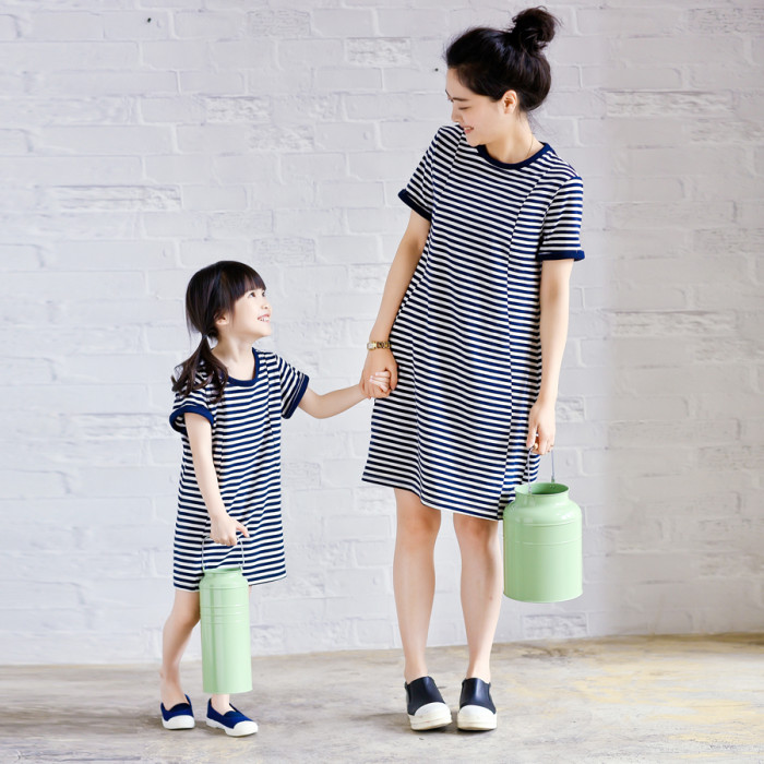 2025夏裝新款韓版條紋洋氣純棉高級休閒寬松親子裝母女裝連衣裙潮
