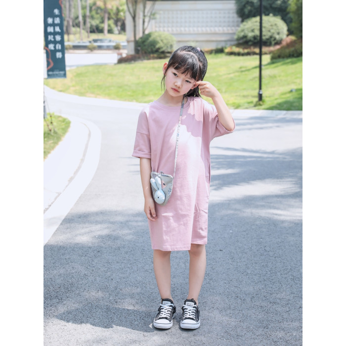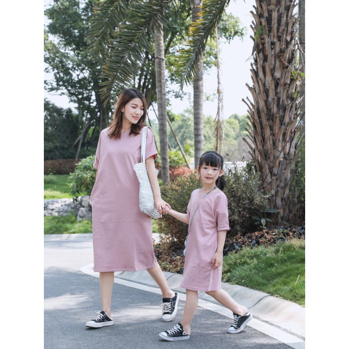 以匠/2025夏裝新款時尚洋氣母女裝親子裝/韓版寬松純棉粉色連衣裙