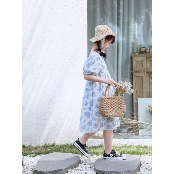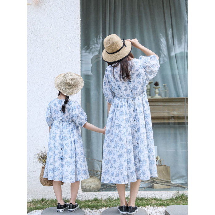 2025夏裝新款小碎花度假風純棉親子裝長裙/文藝寬松母女裝連衣裙