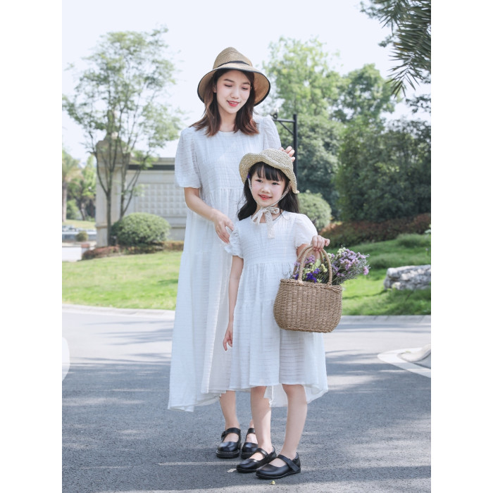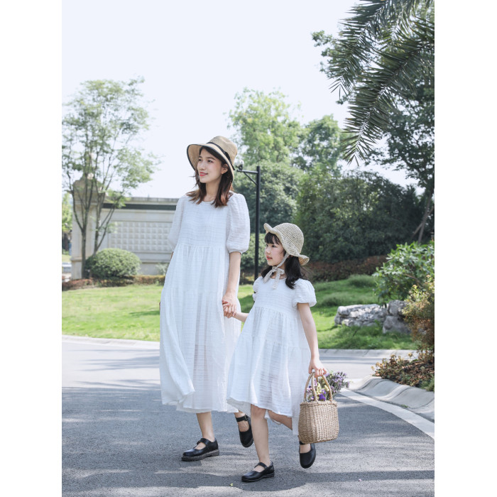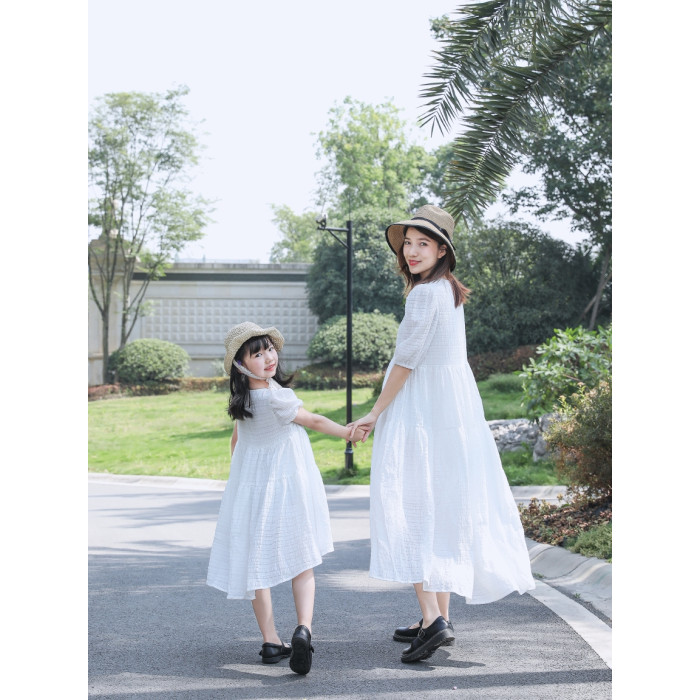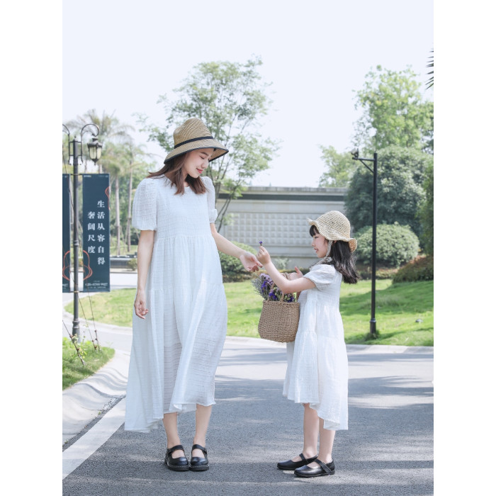 夏裝新款原創洋氣母女裝親子裝海邊度假連衣裙白色寬松文藝長裙