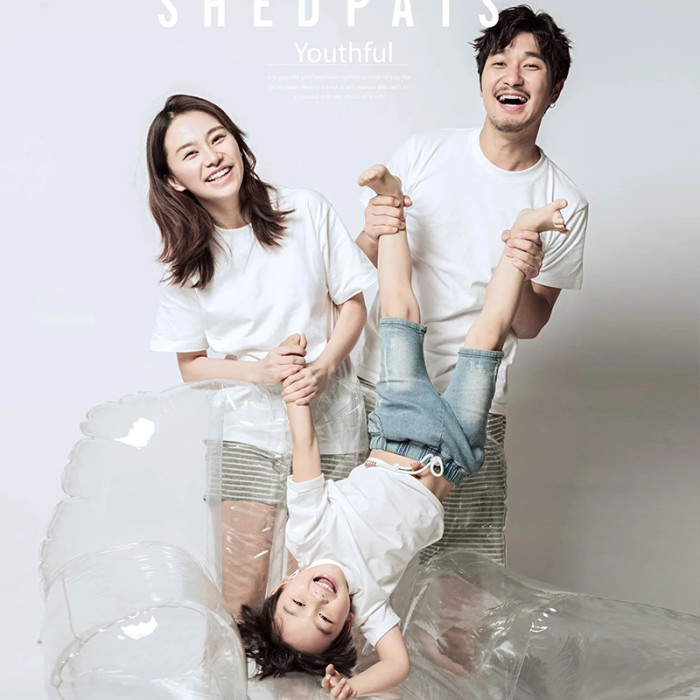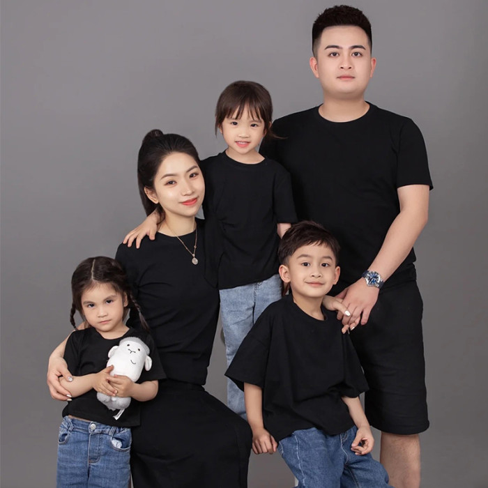 親子裝一家三口母女裝四口高級百日照全家福嬰兒純棉短袖t恤夏季