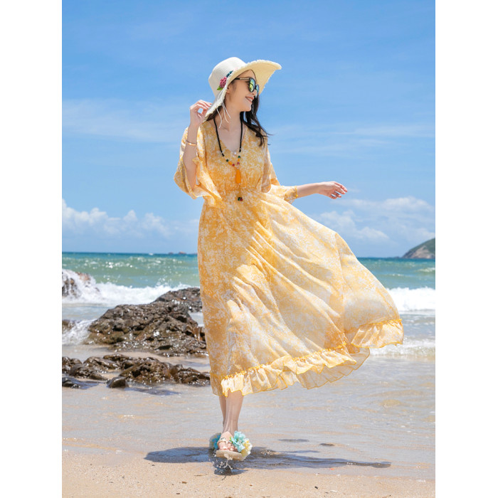 雲南西北三亞海邊旅行穿搭親子裝夏裝一家四口沙灘套裝母女連衣裙