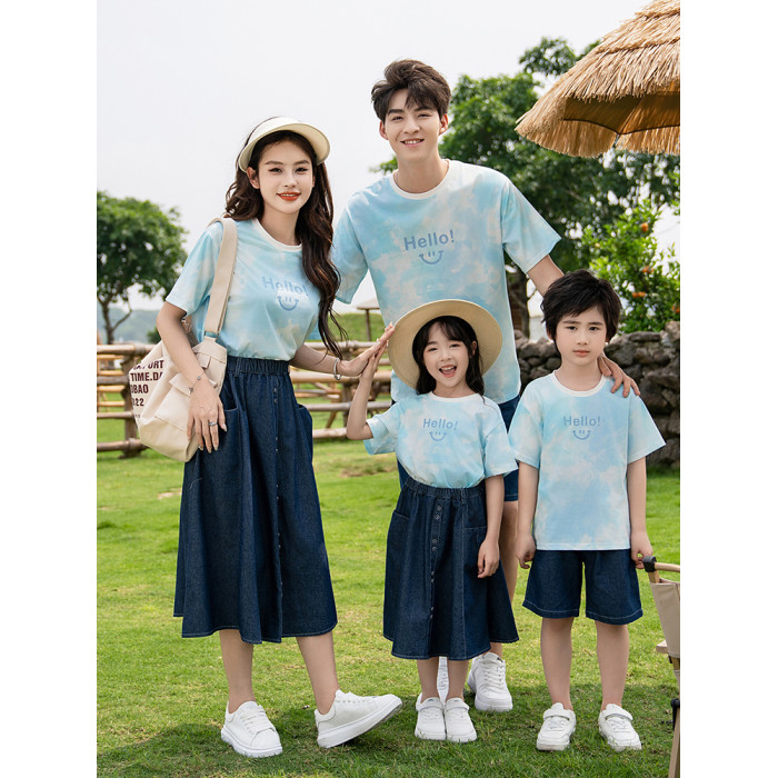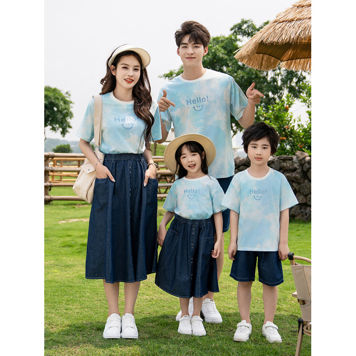 親子裝夏裝t恤2025新款短袖一家三口四口母女裙子母子裝家庭套裝