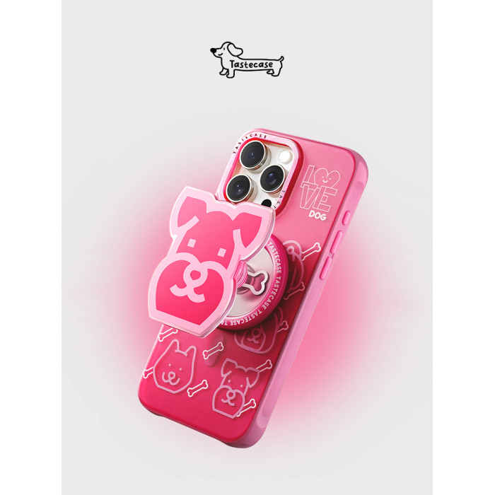 Tastecase粉色狗狗磁吸手機殼適用蘋果iPhone16ProMax/15/14磁吸手機支架新款原創可愛小狗高級感防摔保護殼