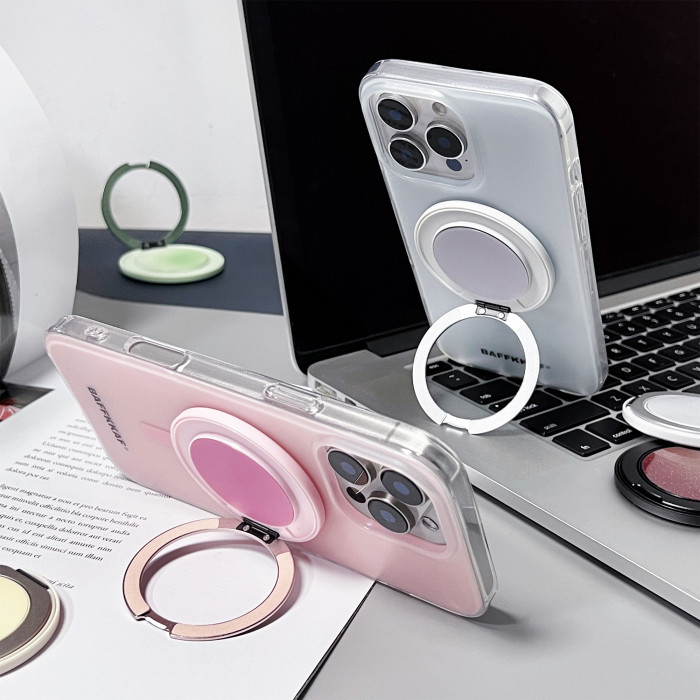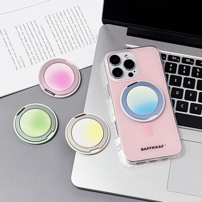 鯨智 360度旋轉橫竪放MagSafe磁吸支架簡約純色漸變手機支架指環扣強力吸附不易掉可攜式新款小衆