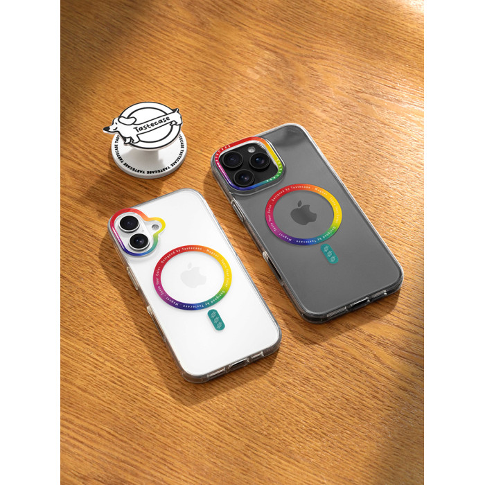 Tastecase彩虹透明磁吸手機殼適用蘋果iPhone16ProMax/15/14保護殼高級簡約原創彩色漸變防摔套磁吸手機支架