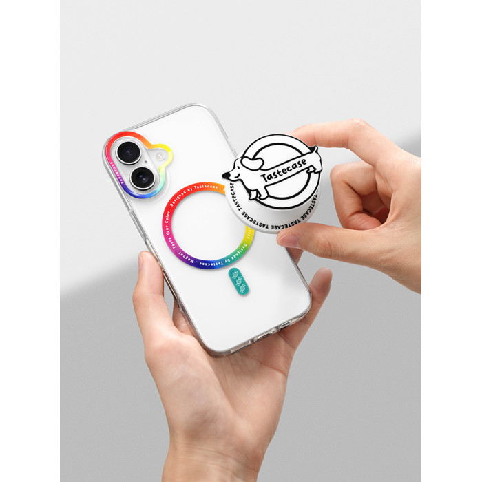 彩虹手機殼+白臘腸狗磁吸支架 (套裝)
