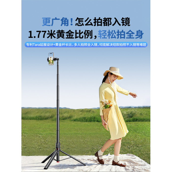 【丟丟桿】安柏希2025新款手機自拍桿三腳架多功能一體旅遊可攜式手持補光支架防抖落地拍攝360度旋轉vlog神器P
