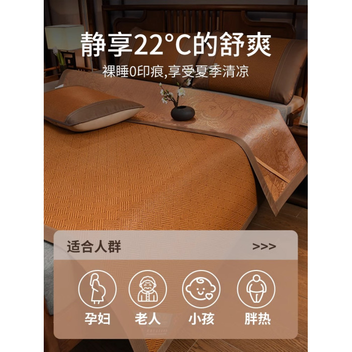 小波羅涼蓆夏天2025新款艾草藤蓆冰絲夏涼蓆竹蓆宿舍乳膠加厚雙面
