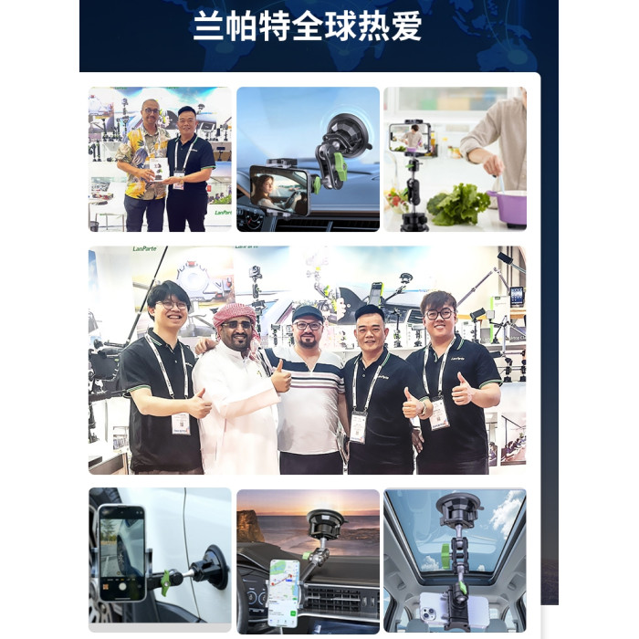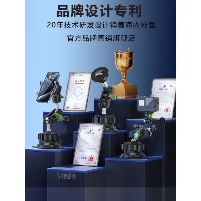 LanParte蘭帕特手機車用拍攝支架車內金屬防抖汽車萬向固定吸盤式第一視角穩定器吸盤專用ipad平板通用支撐架