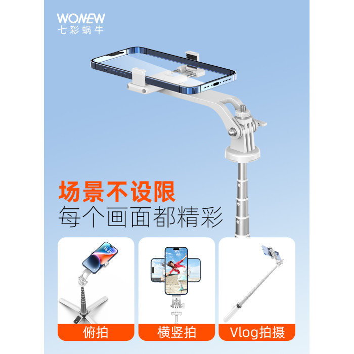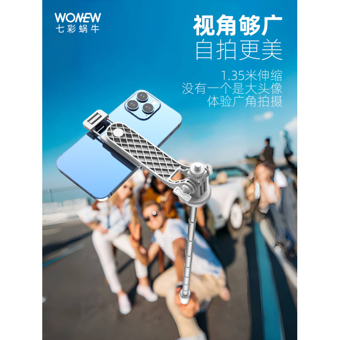 wonew七彩蝸牛途歡自拍桿四腳架手持手機支架迷你可攜式旅遊拍攝三腳架自拍桿補光燈神器2025新款