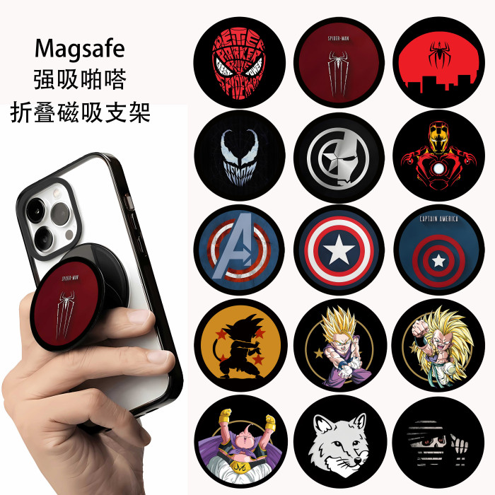 Magsafe強吸啪嗒英雄聯盟鋼鐵人蜘蛛人磁吸手機支架折曡伸縮悟飯