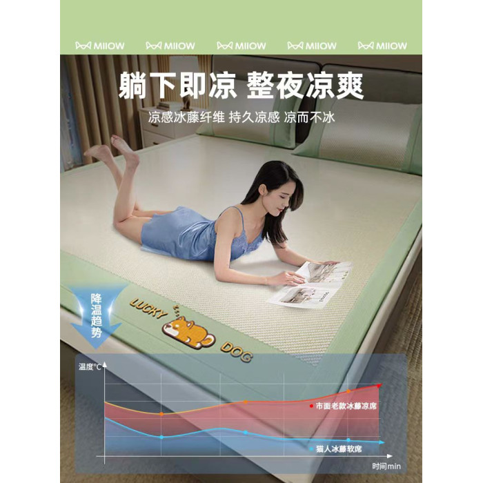 冰絲涼蓆藤蓆夏天2025新款可機洗蓆子夏季a類母嬰級可用竹蓆床笠3