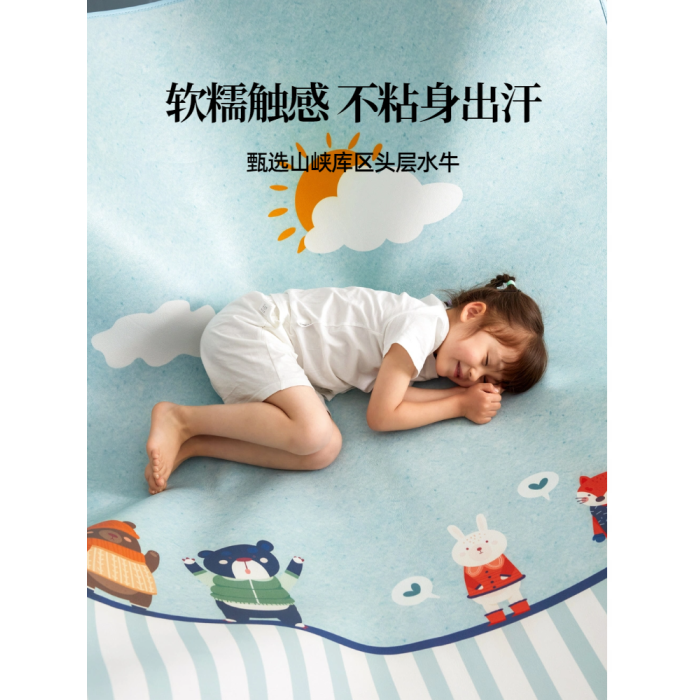 華議兒童彩繪牛皮涼蓆1.2米頭層牛皮蓆天然軟皮蓆母嬰防蟎真皮蓆