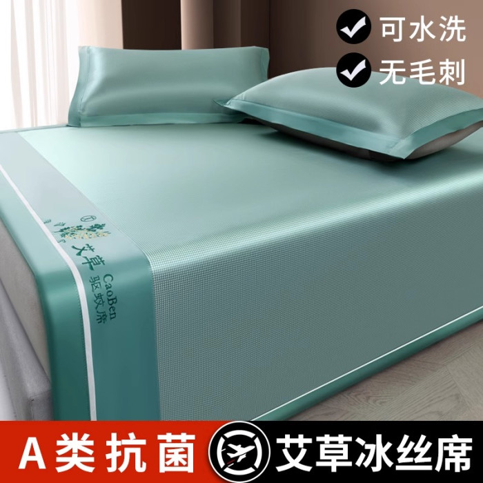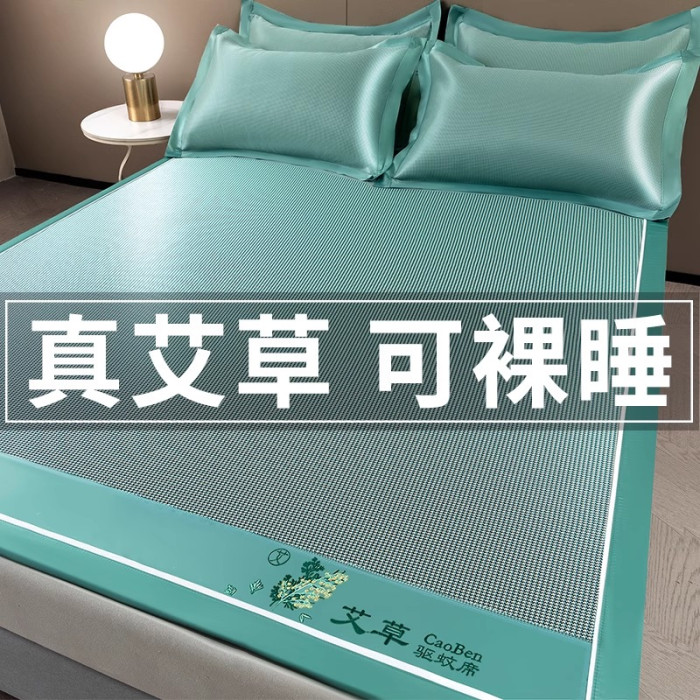 高檔夏季艾草冰絲涼蓆2025新款家用夏天a類母嬰級蓆子可機洗草蓆