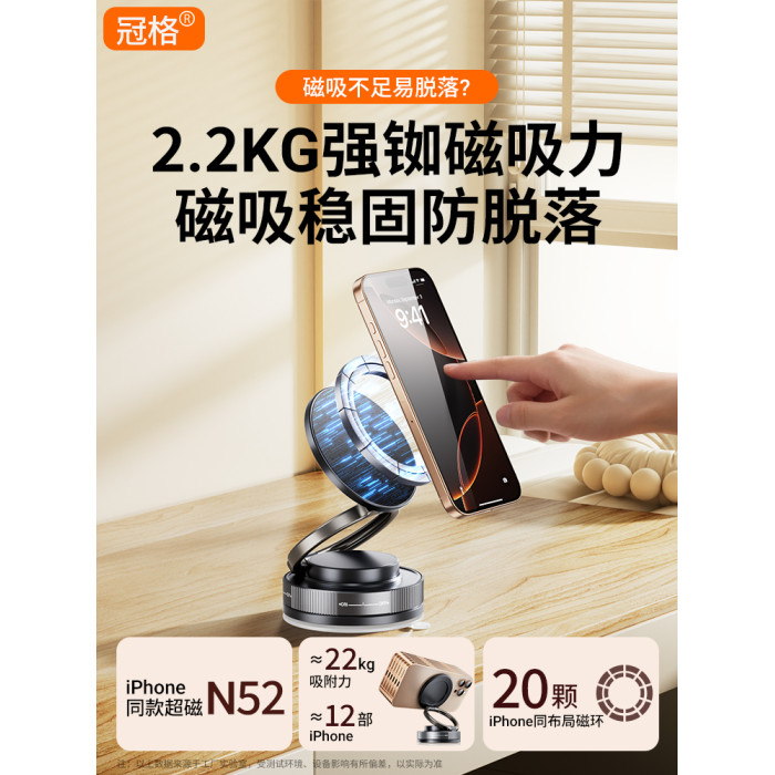 冠格真空吸附磁吸手機支架桌面吸盤2025新款拍攝自拍神器360度升降旋轉折曡牆壁浴室汽車導航固定magsafe專用