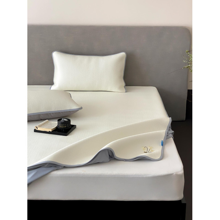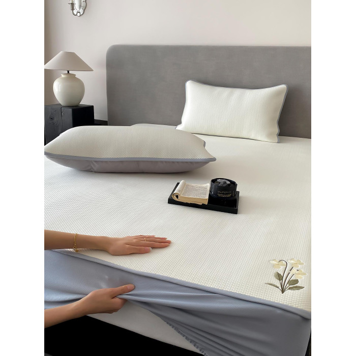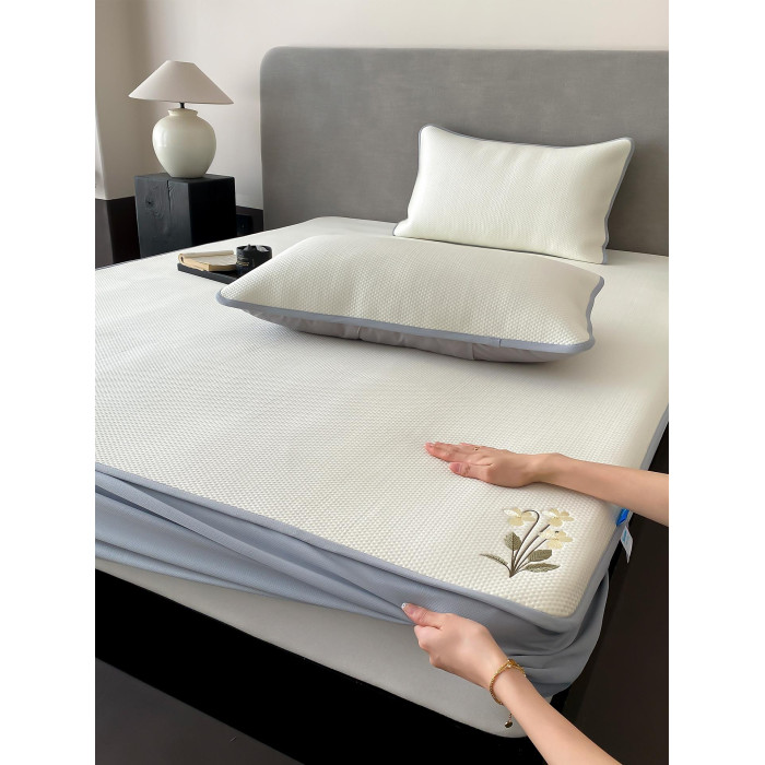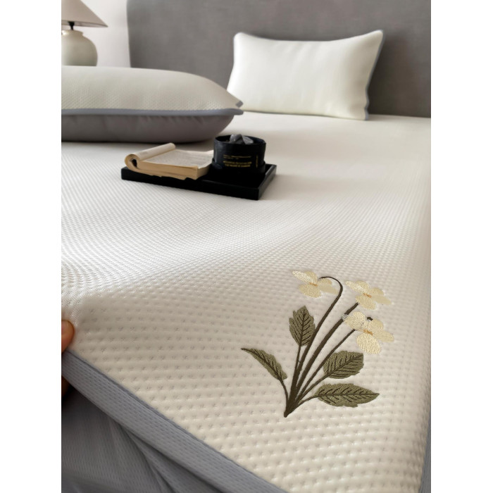 梔子花刺綉夏天乙綸冰絲涼蓆a類母嬰級超涼感涼豆豆床笠款可機洗