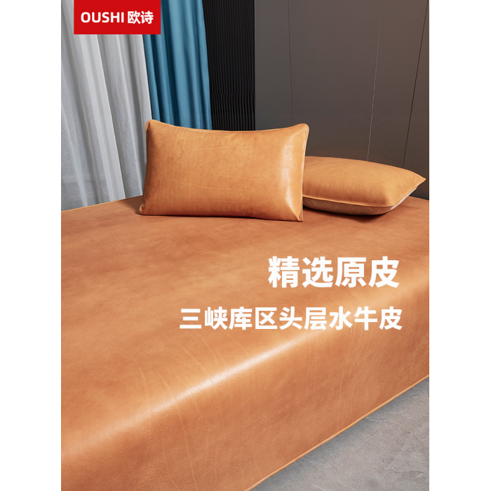 歐詩古法生態清水無塗層牛皮蓆1.8米頭層水牛皮涼蓆1.5m真皮蓆子