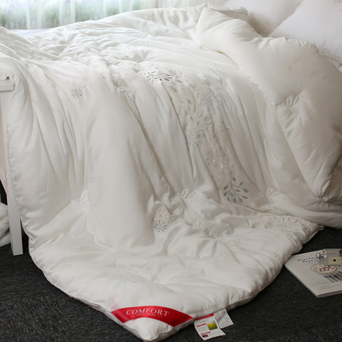 歐式高檔天絲刺綉春秋冬被 加厚被芯白色立體被芯被子雙人床被子