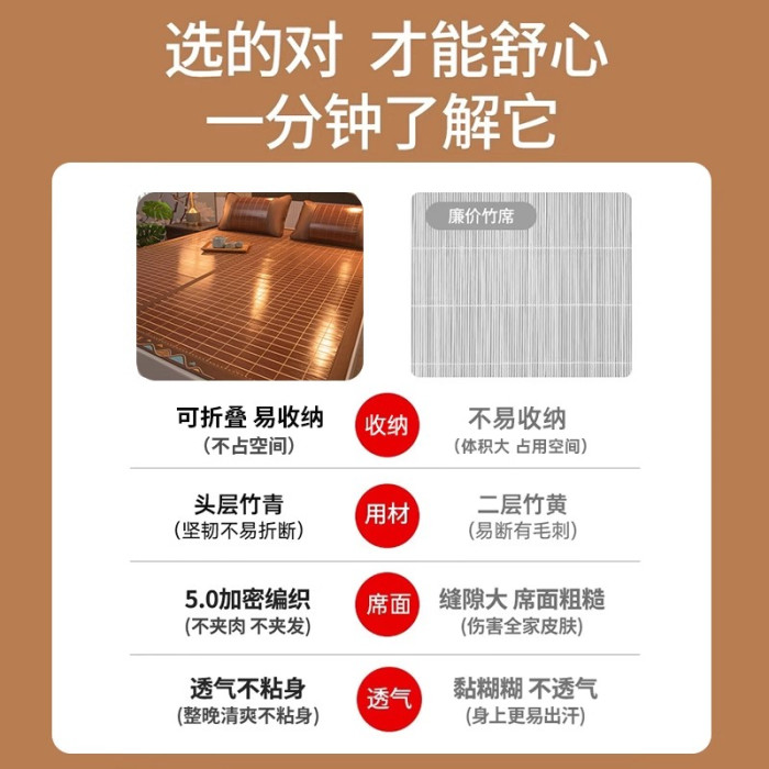 日本MUJIE夏天涼蓆竹蓆2025新款冰絲蓆藤蓆雙面蓆可折曡學生宿舍