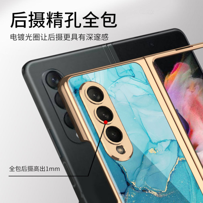 適用三星zfold4手機殼電鍍玻璃個性殼膜w23摺疊螢幕保護套簡約外殼