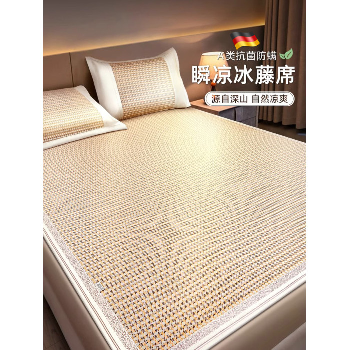 夏天冰絲涼蓆2025新款嬰兒可用母嬰級高級可水洗床笠款床單藤蓆