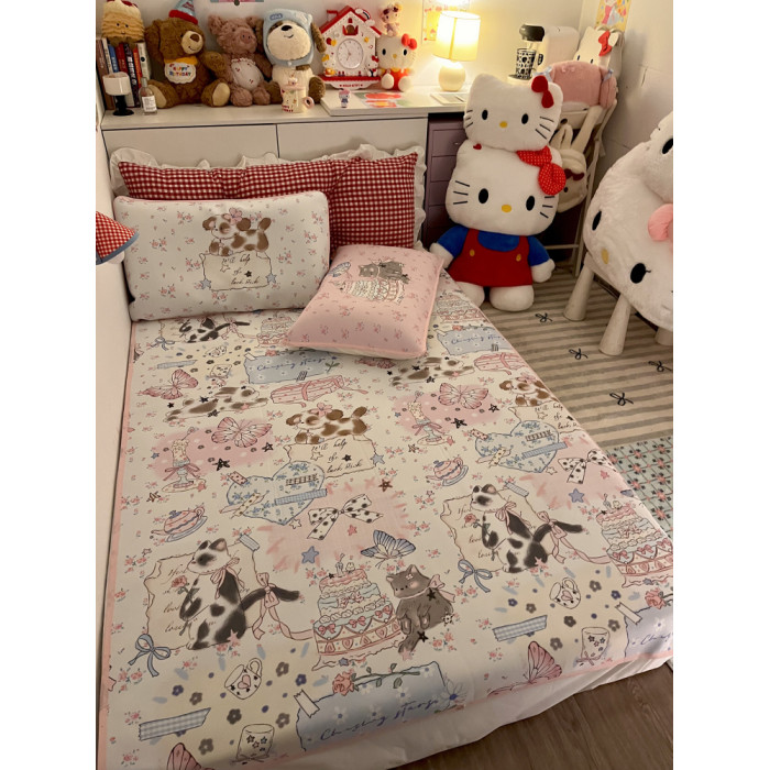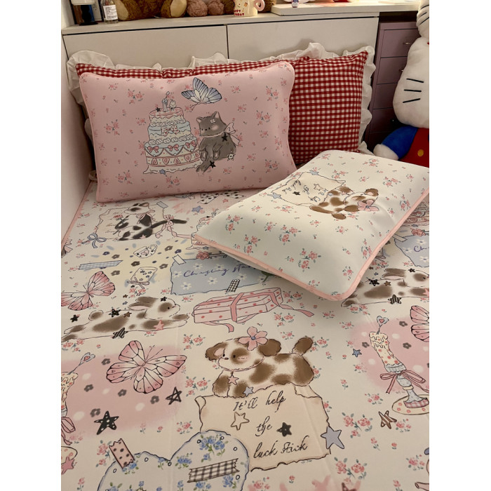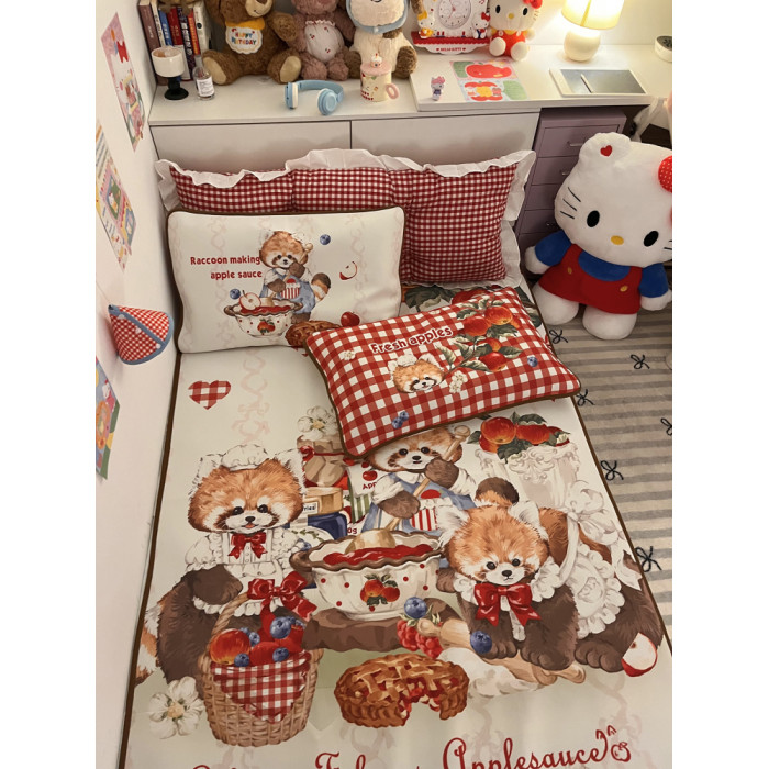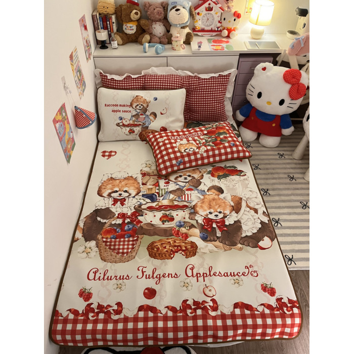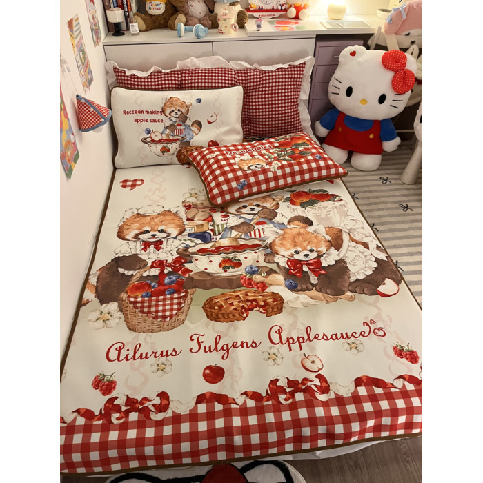晚安貓Lo系小熊貓冰絲涼蓆涼感親膚可折曡機洗水洗少女單雙人床品