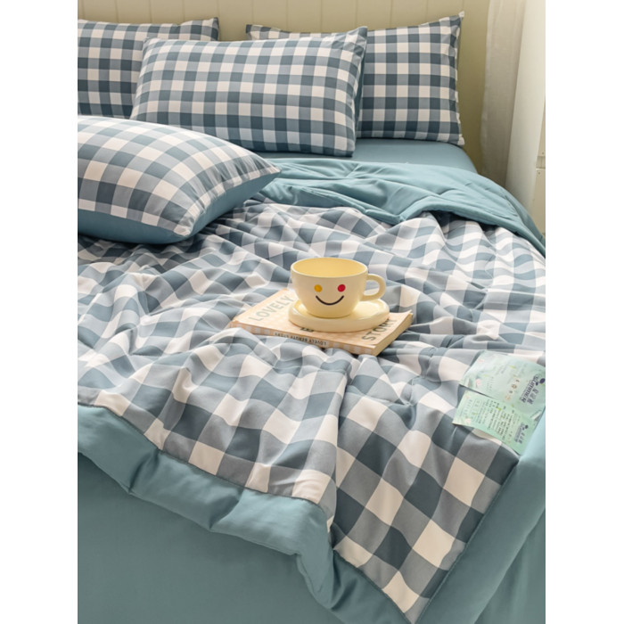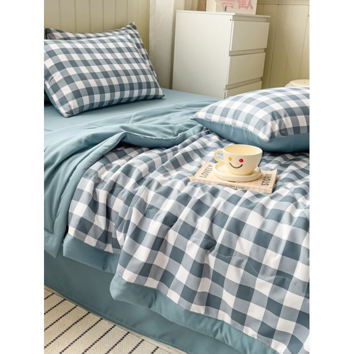 夏被四件套薄被子單人學生雙人簡約格子無印良品風磨毛薄被子