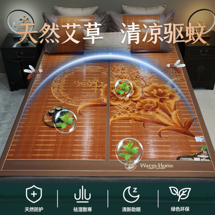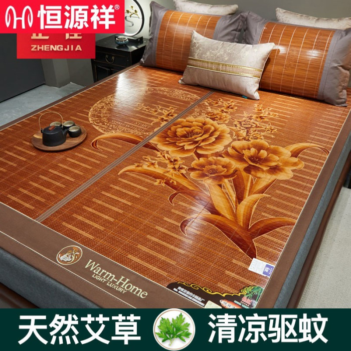 恒源祥夏天竹蓆涼蓆1.5米1.8米冰絲蓆雙人家用加厚折曡式高檔雙面