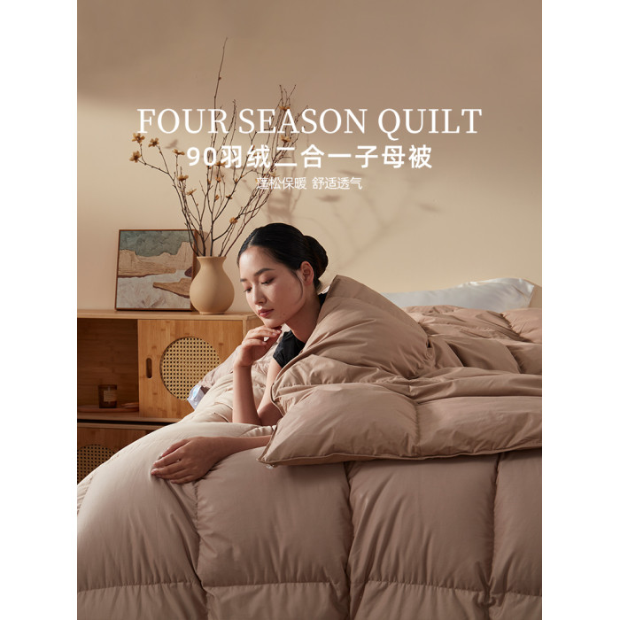 維克多90白鴨絨羽絨被四季子母被被子二合一白鴨絨被單人被芯加厚