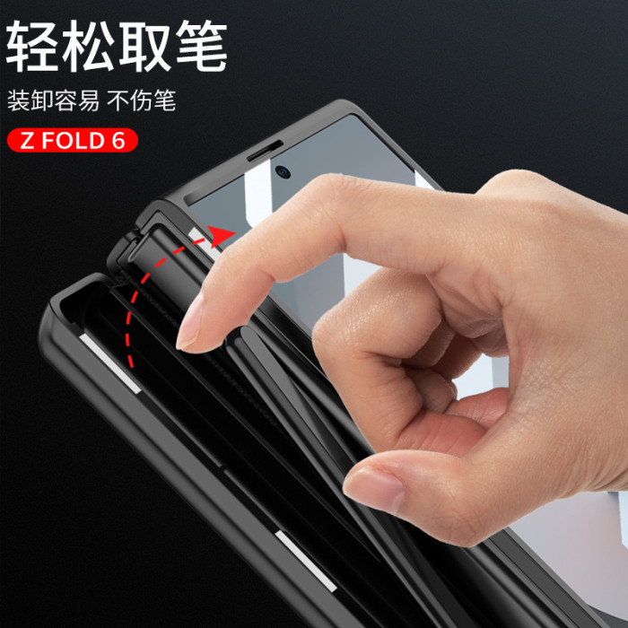 適用三星Fold6手機殼摺疊螢幕素皮全包筆盒殼膜一體磁吸鉸鏈保護套